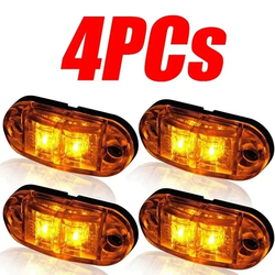 אור צדדי סגלגל למשאית/נגרר, צהוב ענבר לבן אדום, 2 נורות לד, 2.5 אינץ', 2 דיודות, 12V 24V, עמיד למים IP67